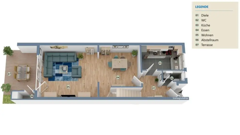 Die in den Grundrissen eingezeichnete Möblierung ist im Lieferumfang nicht enthalten und nicht Vertragsbestandteil.